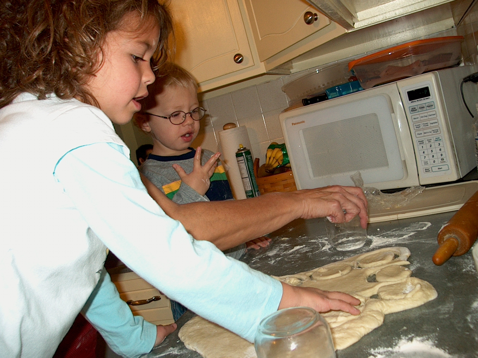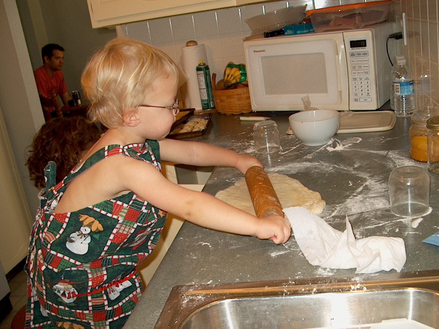 Our young grandchildren have rolled and cut and dipped dough in butter while wearing makeshift aprons.