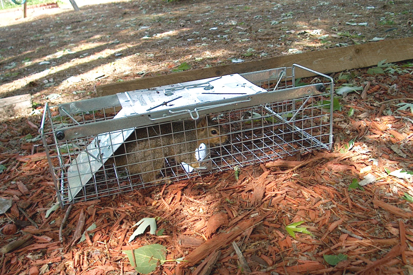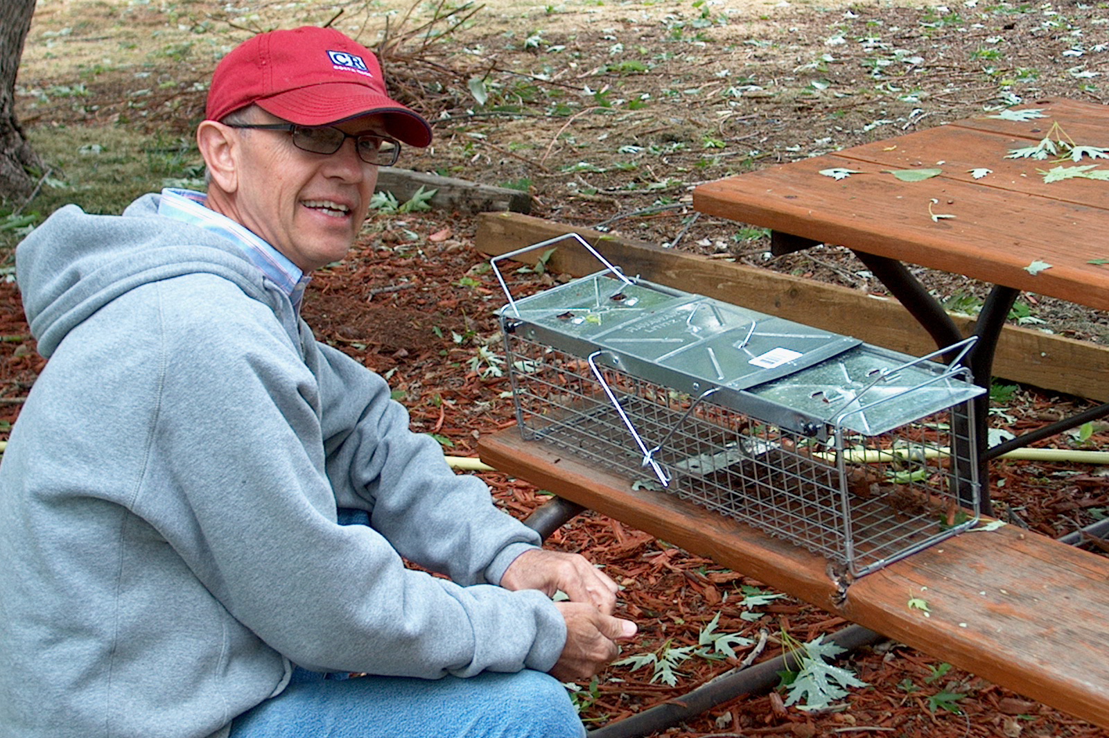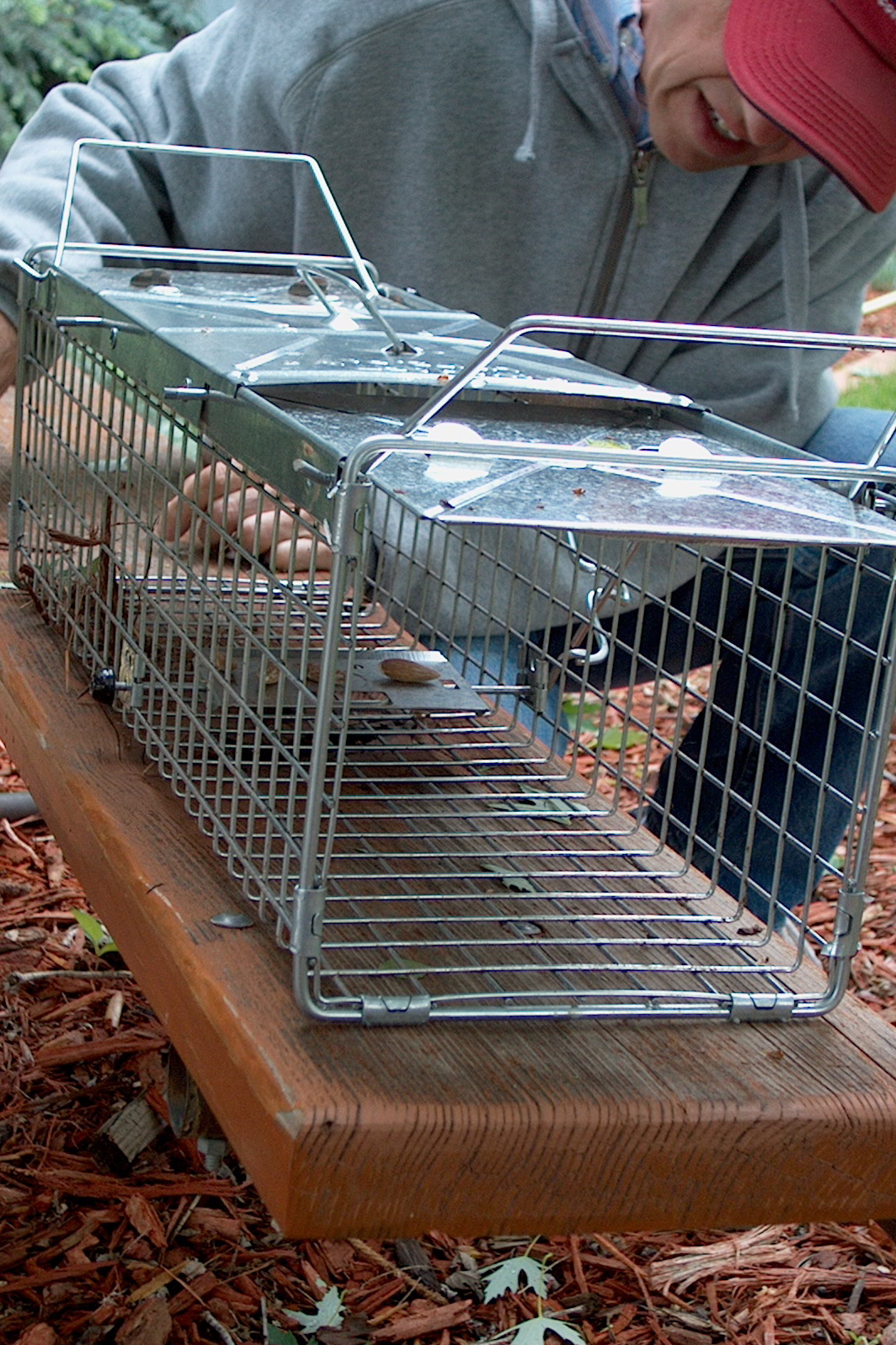 Since we don’t have dogs to scare them away, and we don’t have guns to eliminate them, Don found a solution at Home Depot and came home with the Havahart squirrel trap.