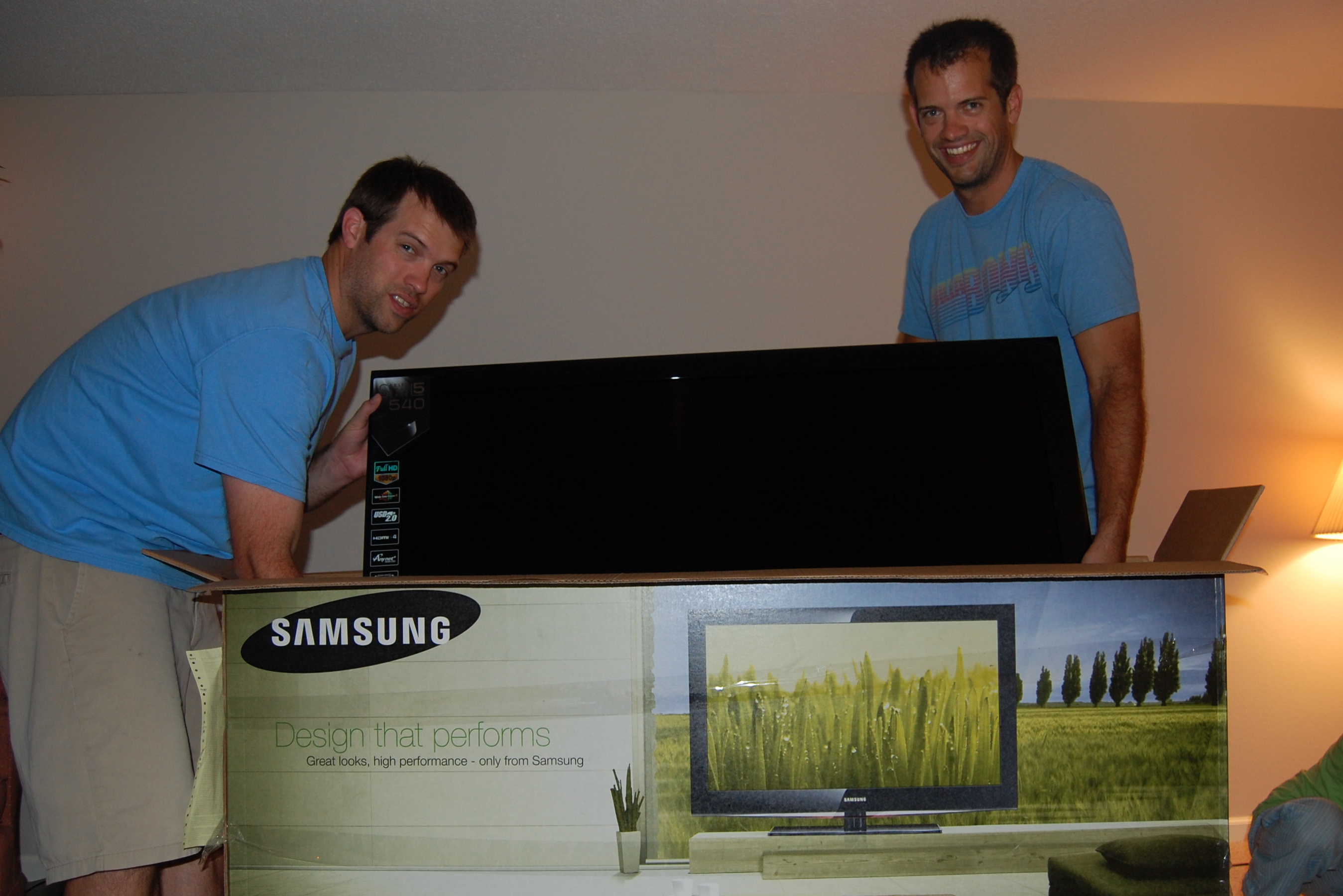 It’s no secret that Don has dreamed of a flat screen TV for a long time, but in spite of our shopping, pondering, and analyzing we have never actually made the big purchase. About every three months, we go to the store and spend a long time looking at a variety of brands, sizes, features and prices. We compare picture quality and discuss how “it” would look in the family room. And we always go home empty handed. After all – our old 27″ Panasonic does just fine.